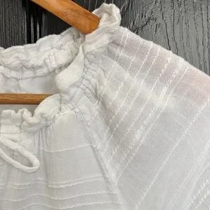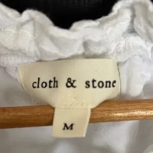 Chic white dress by Cloth and Stone with textured fabric. Features a stylish tie neck and short sleeves. Perfect for versatile styling.