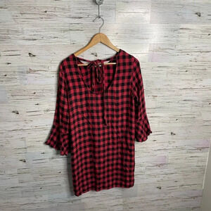 Cloth and stone black red plaid dress size small