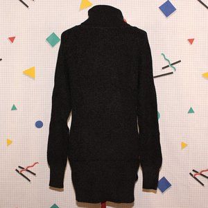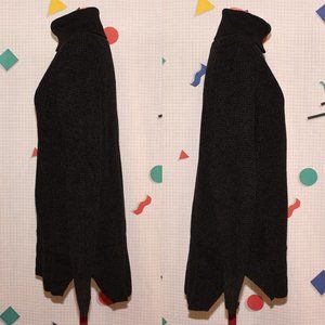Long black/dark gray turtleneck from Cloth. Never worn, washed once. Made in Bangladesh. 58% acrylic/42% cotton. Measurements lying flat are: 19"(38") bust, waist and hips. Material has a 35% stretch limit. Comes from a smoke-free home that has cats and dogs. Tags: y2k, indie, alternative
