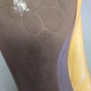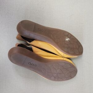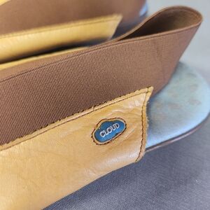 Cloud Caliber peep toe sandals. Soft leather in yellow and brown. Super comfortable sole. Size 37 (fits like 6.5). Very good condition.