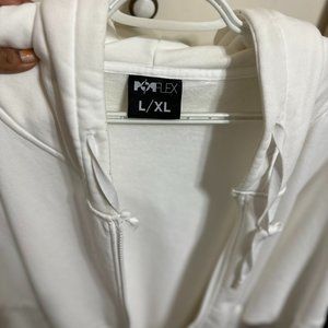 This cloud hoodie is oversized, fit for comfort, blousey sleeves, which is oversized sleeves as well, full zip front, with a large hoodie, pockets in the front, you can use pre-work out, post-work out, while running errands, or casually relaxing in the comfort of your home!