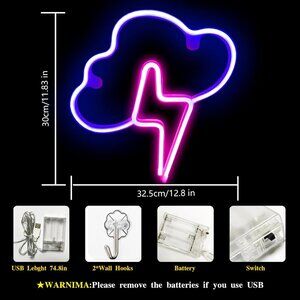 * 💗【Both USB & Battery Operation】 Cloud lightning light up sign requires only 3 AA batteries (not included), or insert USB interface, neon lights has 2 hanging holes behind the lamp, you can hang it on the wall or place it on the table,easy and simple operation.