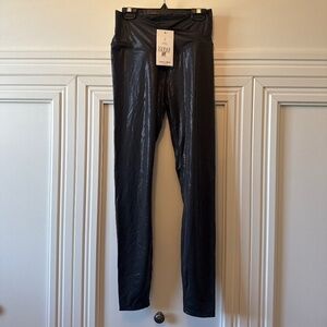 Cloudful Shine Fabric Crossover Back Pocket Foil Print Faux Leather Leggings