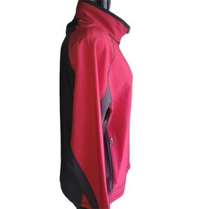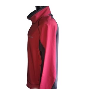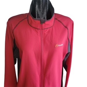 Cloudveil red and grey raglan sleeve lightweight men's jacket. Full zippered front closure with 2 side zippered pockets.