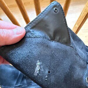 The back of one snap is missing from the left boot (see picture 4). It is 100% decorative/does not need to be snapped. I had it glued down for ages. It could very easily be glued down again.