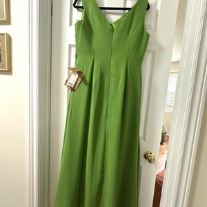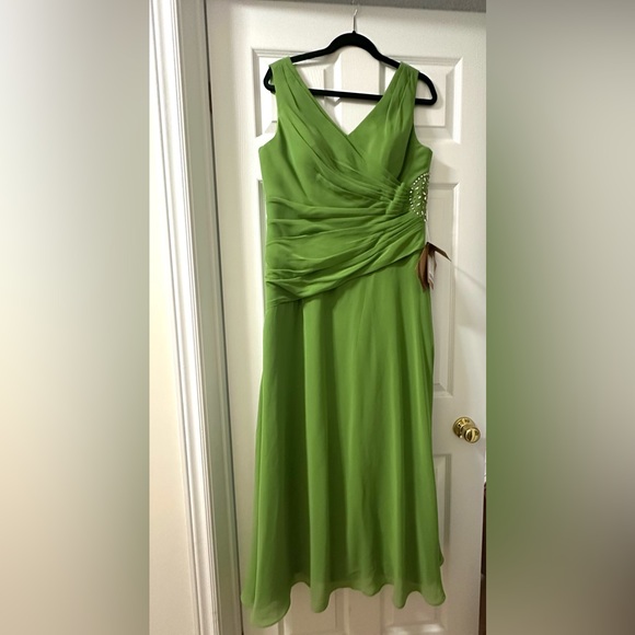 Custom made never worn green wedding guest dress. Beautifully lined, elegant draping and delicate embellishments. Perfect for a summer wedding or formal event.