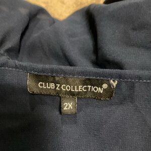 Club Collection 2X Plus Size Navy Tunic Swim Coverup with Pompom Trim