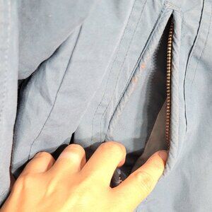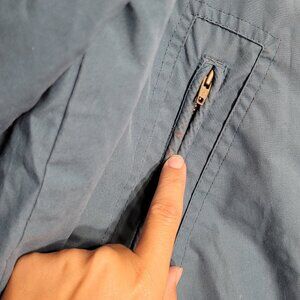 Vintage Club International Teal Blue 90s Windbreaker Y2K Jacket Snap Zip Front Retro Style Gold Tone Hardware Zip Pockets Fold Up Collar