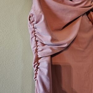 Club L London Pink Maternity Bardot Knot Ruched Cocktail Midi Dress Size US 10.