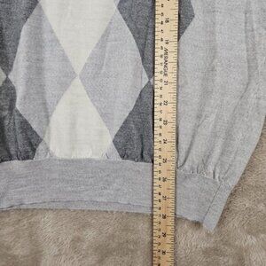 Club Monaco 100% Merino Wool Sweater Argyle Pattern Mens Size L Gray Long Sleeve