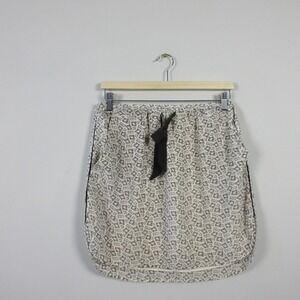 Keywords: Club Monaco, silk skirt, mini skirt, size 2, drawstring skirt, pockets, geometric print, beige skirt, womens skirt, designer skirt, luxury skirt, contemporary fashion, silk blend, casual skirt, summer skirt