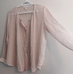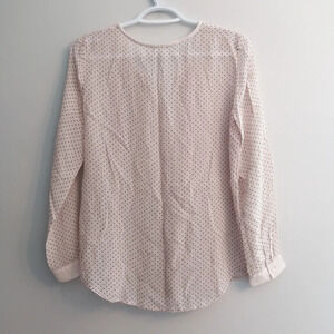 Club Monaco 100% Silk Semi Sheer Pale Pink Polka Dot Button Up Blouse