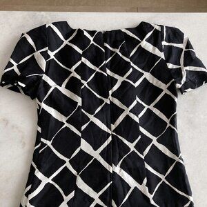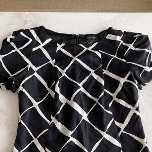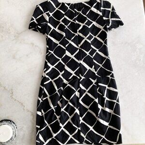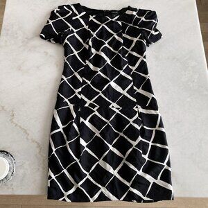 Club Monaco 100% silk black & white diamond print short sleeve dress, round neck