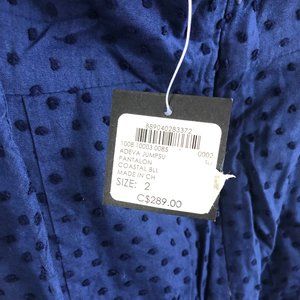 Women | Adeva Open-Back Jumpsuit | Club Monaco Strappy and structured, this flirty jumpsuit is a vision in blue with a slim-fitting bodice and abbreviated wide legs. Detailed with dual shoulder straps and a low-scoop back, the Adeva brings a playful perspective with allover textured dotting. • Cotton •Slim fit; wide leg •22 ¾" inseam •Scoop neck; adjustable dual straps with self-tie accent at back; low back; hidden back zip
