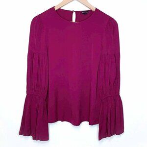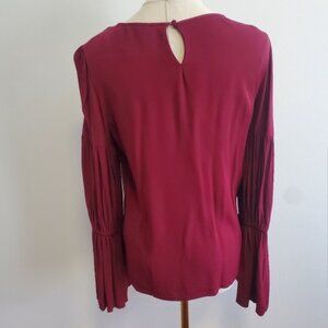 Club Monaco - 'Amund' Crewneck Pleated Long-Sleeve Red Blouse Top - size Large