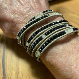 Club Monaco Beaded Leather Wrap Bracelet