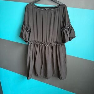 Club Monaco Black Ruffled Bell Sleeve Mini Dress 100% cotton