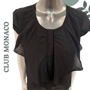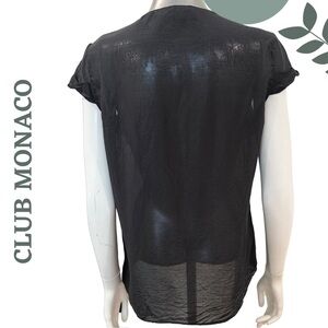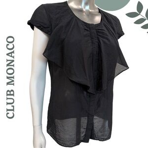 Club Monaco Black Semi Sheer Ruffle Front Silk Blend Cotton Blouse – Size Medium