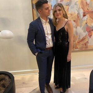 Elegant and refined: this Club Monaco “Sequin Pleated Occasion Maxi Dress” in black is the kind of dress that feels special the moment you put it on. Purchased last December and worn once to my sister’s wedding — its condition remains excellent and it’s ready for its next big moment.