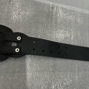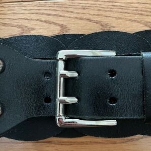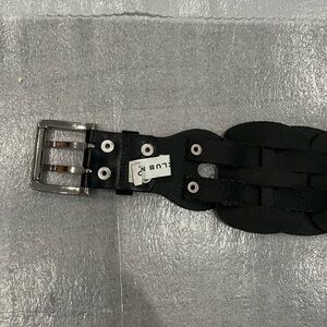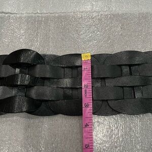 Club Monaco Black Woven Leather Wide Belt with Silver Toned Buckle