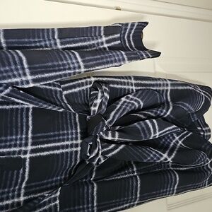 Stylish plaid dress with tie waist. Long sleeves and classic collar. Perfect for casual outings.