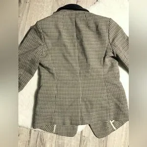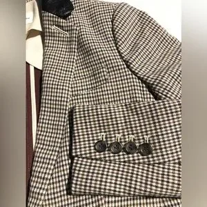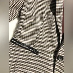 Houndstooth blazer with real leather trimming. Has a nice weight to it - great for fall :)