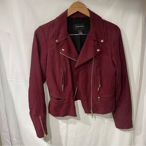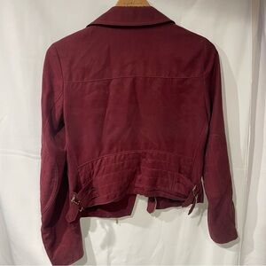 Chic burgundy utility jacket with zipper accents. Ideal for a stylish look.