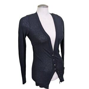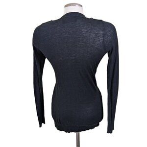 Club Monaco Cardigan Womens XS Black Button Pockets Epaulettes Silk Blend Light