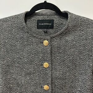 Club Monaco Collarless Tweed Jacket with Gold Buttons