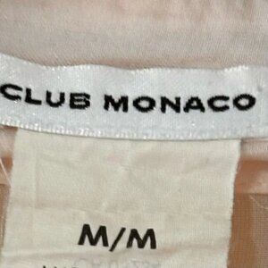 This stylish pink blouse from Club Monaco features elegant puff sleeves and a classic dress shirt collar, offering a relaxed yet sophisticated look. The lightweight fabric and button-down design make it a versatile choice for both casual and formal occasions. Size medium. Made in China. In good pre-owned condition, laundered and ready to wear.