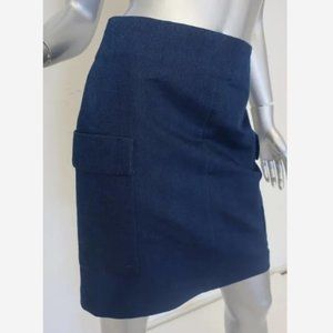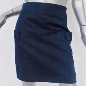 Absolutely gorgeous cotton-blend skirt with two large functional pockets on each side. Skirt has a denim feel, Club Monaco describes it as Sapphire Cotton Twill.