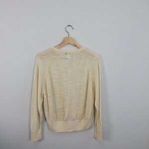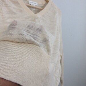 Club Monaco Cropped Top Women's XS Beige Sheer Long Sleeve V-Neck Casual 110