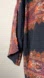 Chic dark blouse with vibrant orange and red patterns. Perfect for a fashionable look.
