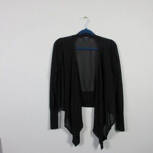 Club Monaco Drape Open Front Cardigan Sweater Women S Black Rayon Silk LS 272