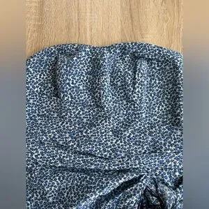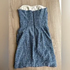 This elegant strapless dress features a beautiful blue pattern, perfect for any occasion. The stylish design and flattering fit make it a must-have addition to your wardrobe.
