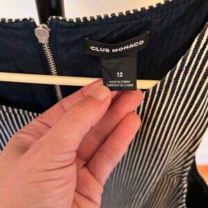 Lined Club Monaco dress, size 12 Vertical stripes, dark blue and white Used but in good condition