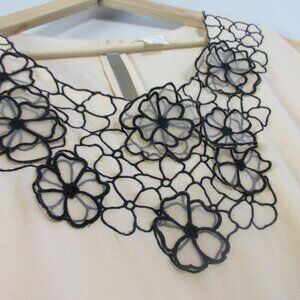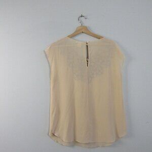 Club Monaco Floral Embellish Silk Blouse Women S Tan Boxy Cap Sleeve Casual 104