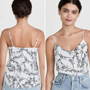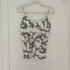 Club Monaco Floral Kora Satin Cami Top White Black Size XS