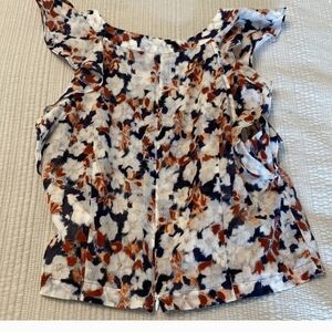 Stylish floral blouse by Club Monaco. Features a mix of black, white, and brown colors. Perfect for casual outings.