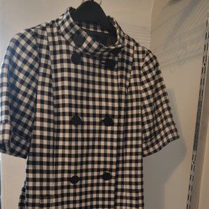 Adorable, super chic short-sleeve gingham coat, looks great over dresses, or with a t-shirt, jeans and sneakers. You can wear it cinched at the waist with the belt, or straight for a more modern look. I have only worn it once to a wedding, it is in perfect condition. Has pockets!!