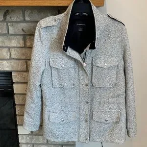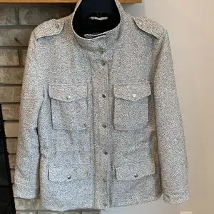 Jacket with interior drawstring for ruching or can be worn boxy. Four functional pockets.