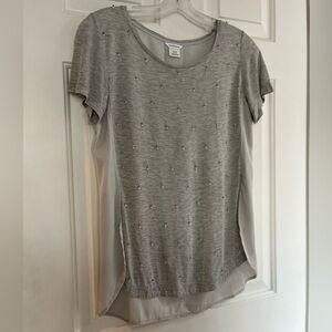 Club Monaco Jewel Embellished Mixed Media Tee XS Heather Grey