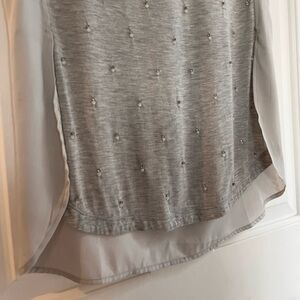 Club Monaco Jewel Embellished Mixed Media Tee XS Heather Grey