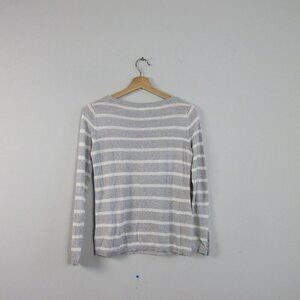 Club Monaco Linen Blend Nautical Sweater Women S Striped Gray White Knited 172
