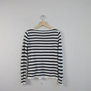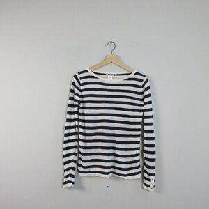 Club Monaco Linen Blend Nautical Sweater Women XS Striped Black White Knit 166
