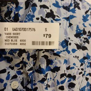 Club Monaco Mens Floral Button-Down Collared Shirt Blue White Small NEW WITH TAG