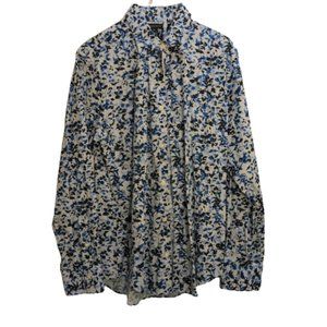 Club Monaco Mens Floral Button-Down Collared Shirt Blue White Small