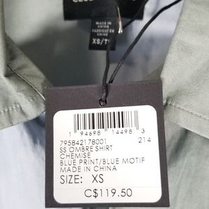 Club Monaco Men's Shirt Size XS Short Sleeve Ombré Blue Boxy Relaxed Fit