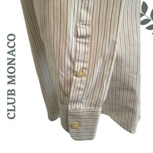 Club Monaco Men’s XL Button-Up Shirt – White with Fine Pinstripes Blue Black