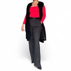 Tags Club Monaco, M Patmos, merino wool, wool vest, black vest, faux leather trim, minimalist style, classic style, capsule wardrobe, layering piece, fall fashion, winter style, quiet luxury, old money aesthetic, elevated basics, professional dressing, fashion on a budget, luxury style for less, neutral style, sustainable fashion, quality over quantity, style for women 30 and up.